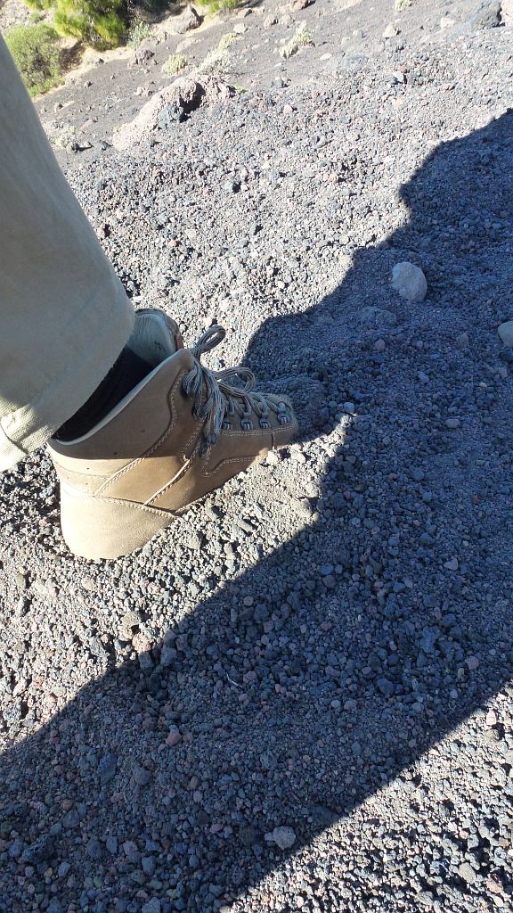 Kurz bevor der eigentliche Abstieg beginnt, den wir ohnehin etwas langweilig in Erinnerung haben, da es dort wirklich nur noch scheinbar endlos durch die öden Schlackenfelder geht, durch die man sich wegen der Einsinktiefe im Schlackenkies richtig vorkämpfen muß, kehren wir um, denn unser Auto steht ja am anderen Ende der Route und so bekraxeln wir halt die Vulkane wieder in entgegengesetzter Richtung…