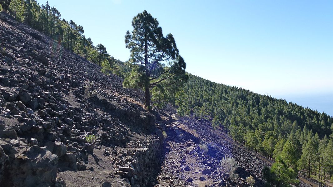 Viele Teile der Route wurden im Laufe der Jahre neu angelegt, vor ca. 15 Jahren war der Abstieg ab hier nach Fuencaliente stellenweise kaum begehbar, weil man in der Pillenschlacke knöcheltief einsank.