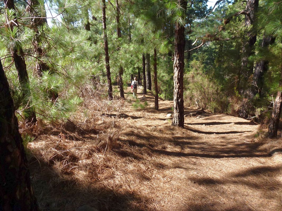 Die Beliebtheit der Cumbrecita hat allerdings mittlerweile dafür gesorgt, daß die Strasse für Fahrzeuge ohne Sondergenehmigung gesperrt ist, weil die Knipstouristen für das totale Parkplatzchaos gesorgt hatten. Insofern bietet sich der Fußweg ab der Kapelle an, den wir noch nicht kennen und deshalb heute zumindest ein Stück weit erkunden wollen. Hier ist die Gefahr, anderen Touristen zu begegnen, relativ gering, was uns entgegenkommt, wenn wir mit GPS Querfeldein-Abkürzungen suchen. Zunächst geht es aber von der Kapelle aus durch den bekannten Kiefernwald…