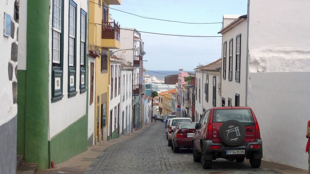 Also fahren wir über den Berg und über die alte Serpentinenstraße von Brena Alta aus in die Inselhauptstadt Santa Cruz, wo wir in einer Gasse der Altstadt einen Parkplatz finden (was auf den offiziellen Parkplätzen eher schwierig und teuer ist).