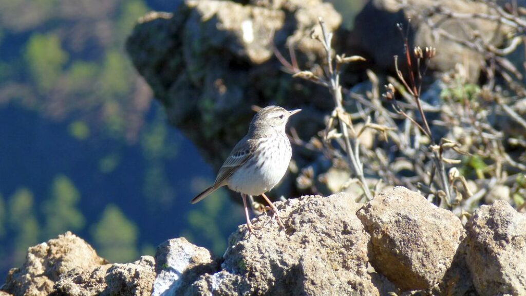 Auch zahlreiche Vögel, die es nur hier auf den Kanaren gibt, sind uns gelegentlich begegnet, so z.B. auf unserer Bejenado-Tour der Kanarenpieper…