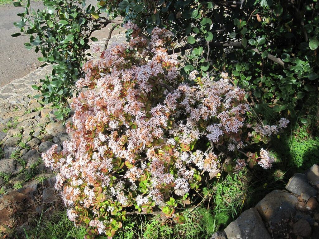 …der bei uns in kleinen Blumentöpfen niemals blühende Geldbaum…