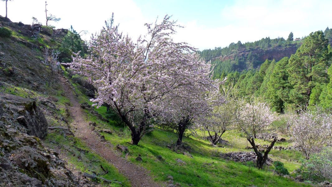 Der Rückweg geht ein ganzes Stück über asphaltierte Straße, dann hilft uns das GPS wieder, einige Abkürzungen und letztlich im letzten Stück den Weg durch die Mandelpflanzung wiederzufinden, den wir auch gekommen waren. Jetzt können wir sehen, daß sich in der Caldera – die eben noch völlig frei war – inzwischen wieder die Cascada ausbreitet…