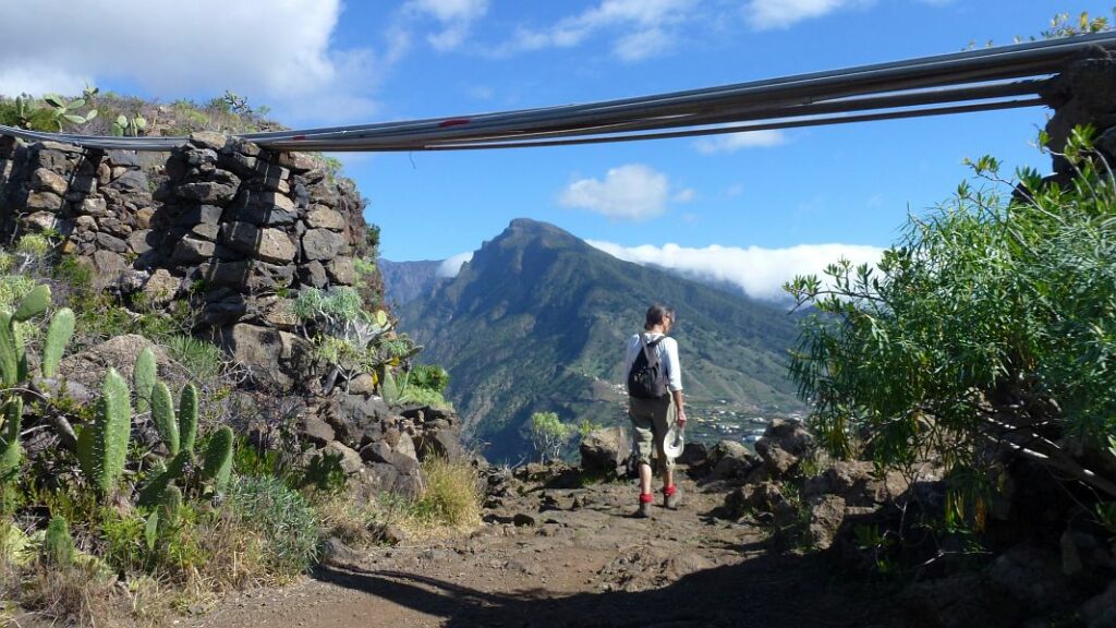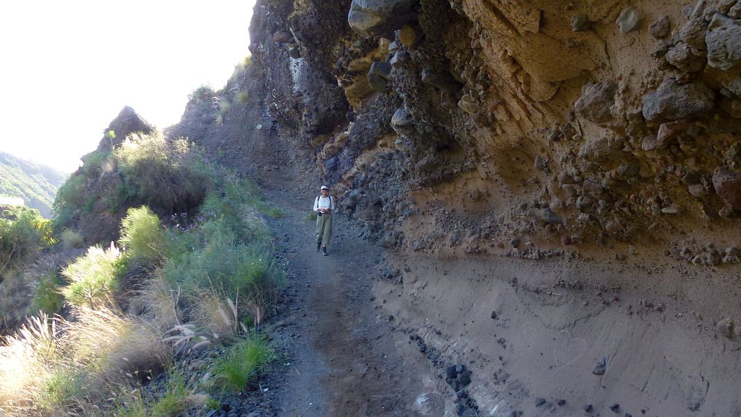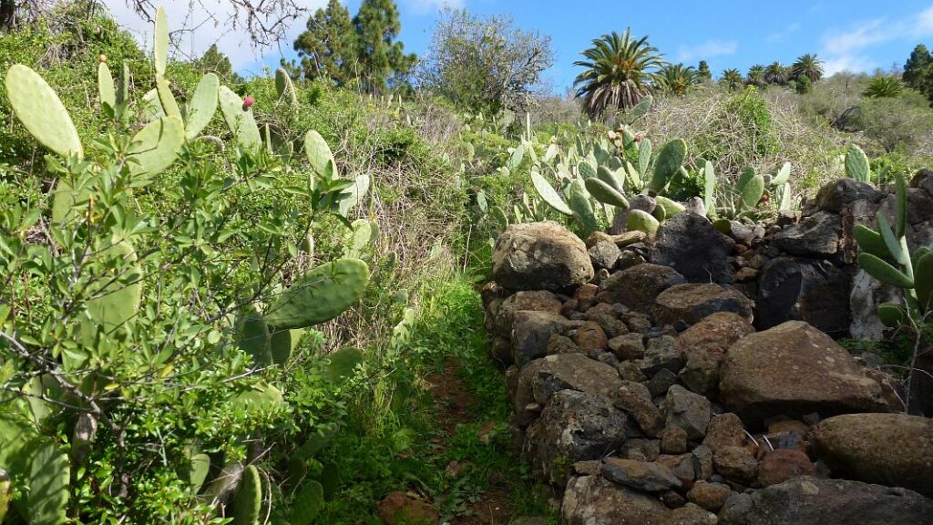 Oberhalb des Mirador de las Cabezadas kehren wir dann um und nehmen den Weg durch ein ‘palmerisches Aquädukt’ hinab…
