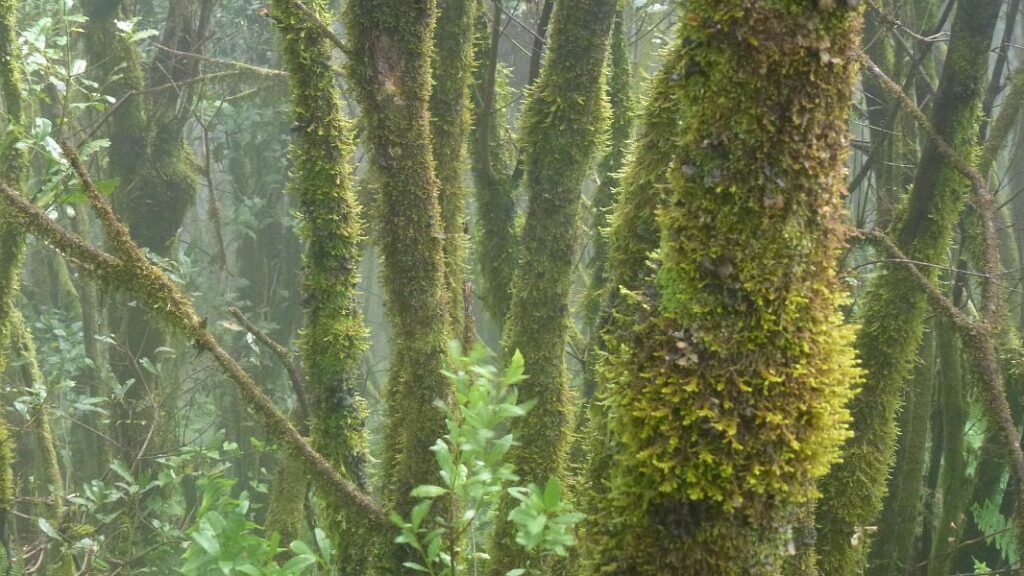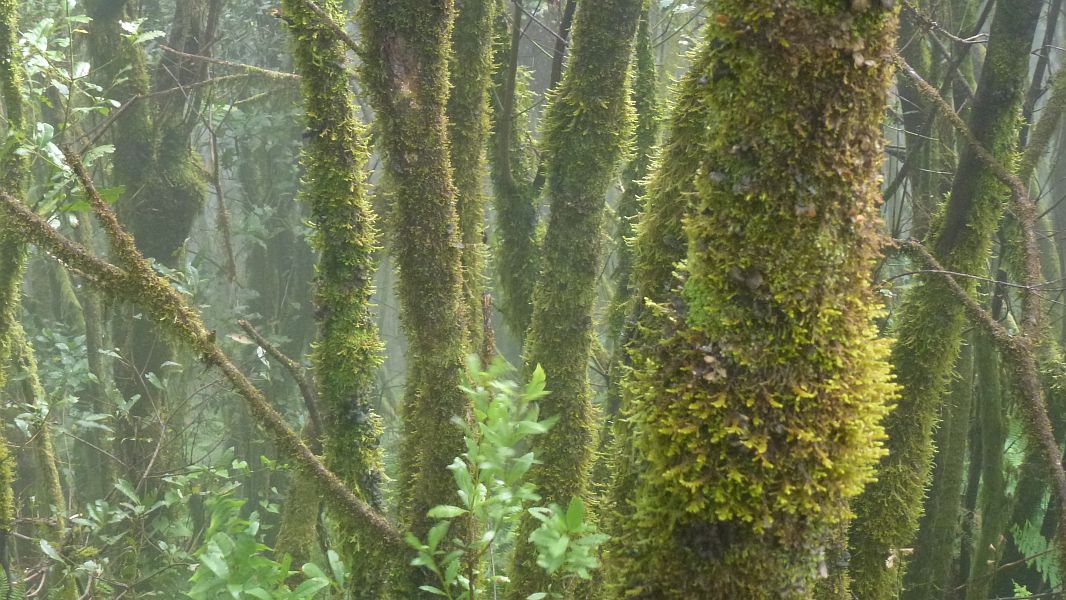 …an den Stämmen der entlang des Weges stehenden Baumheide kann man sehen, daß hier wohl die Stelle ist, an der die Cascada fast täglich über die Cumbre schwappt…