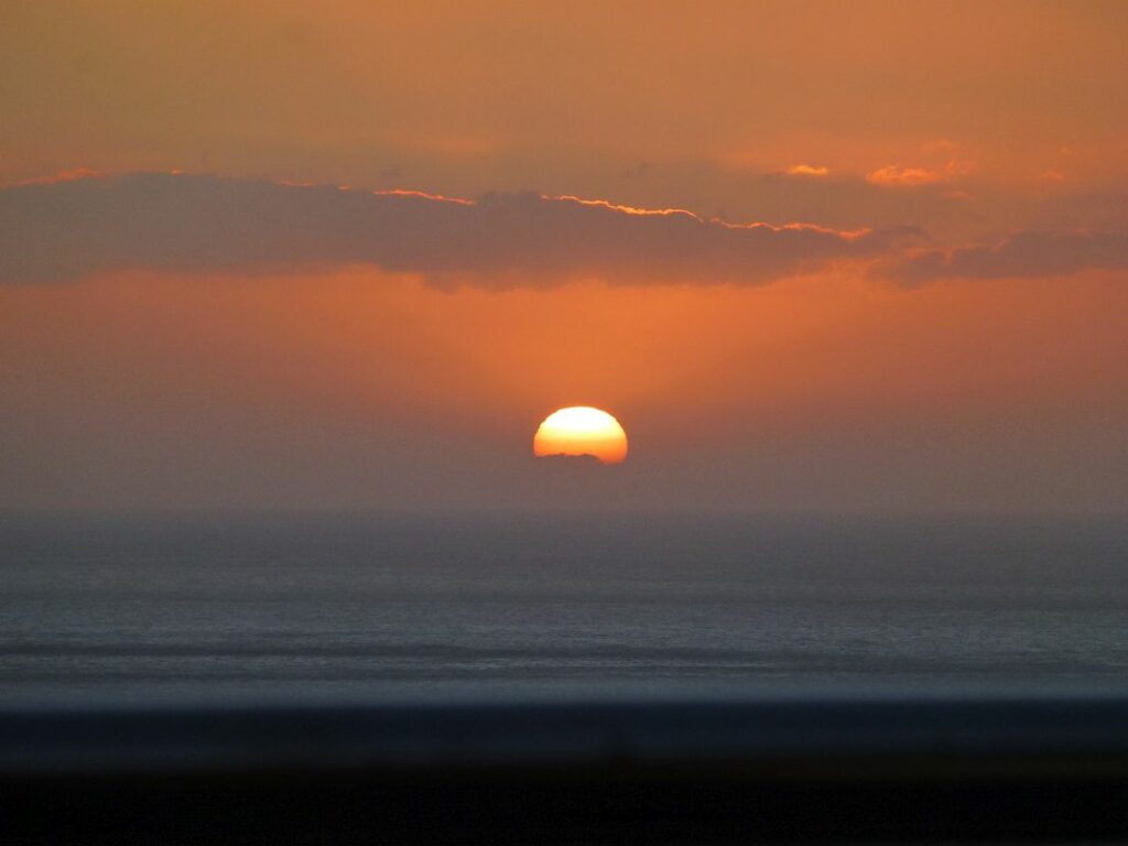 Dieser vermeintliche Zusammenhang, von der Art des Sonnenuntergangs eine Wetterprognose ableiten zu können, relativiert sich heute etwas, denn der gestrige Sunset war fast postkartenreif