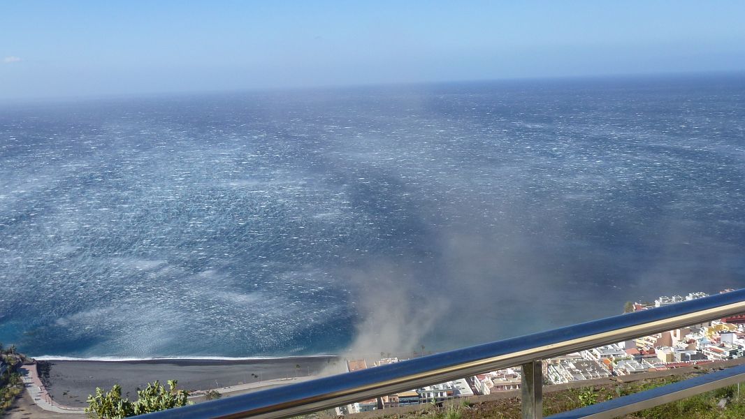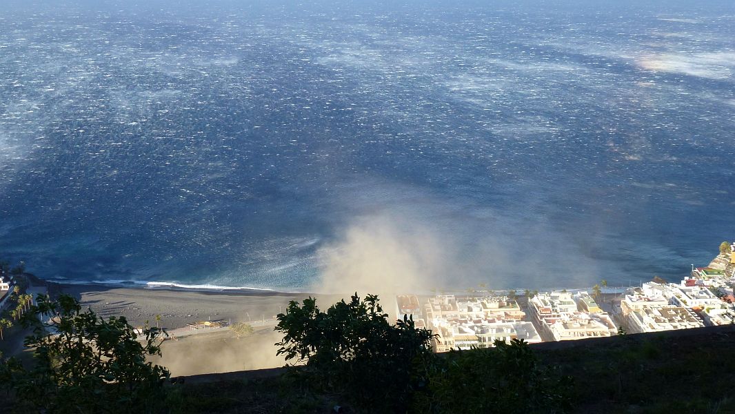 Weitaus unangenehmer ist da unten für Puerto Naos, daß der Lavasand des Paraglider-Landeplatzes ständig hochgewirbelt wird und als Sandsturm durch die Gassen zieht…