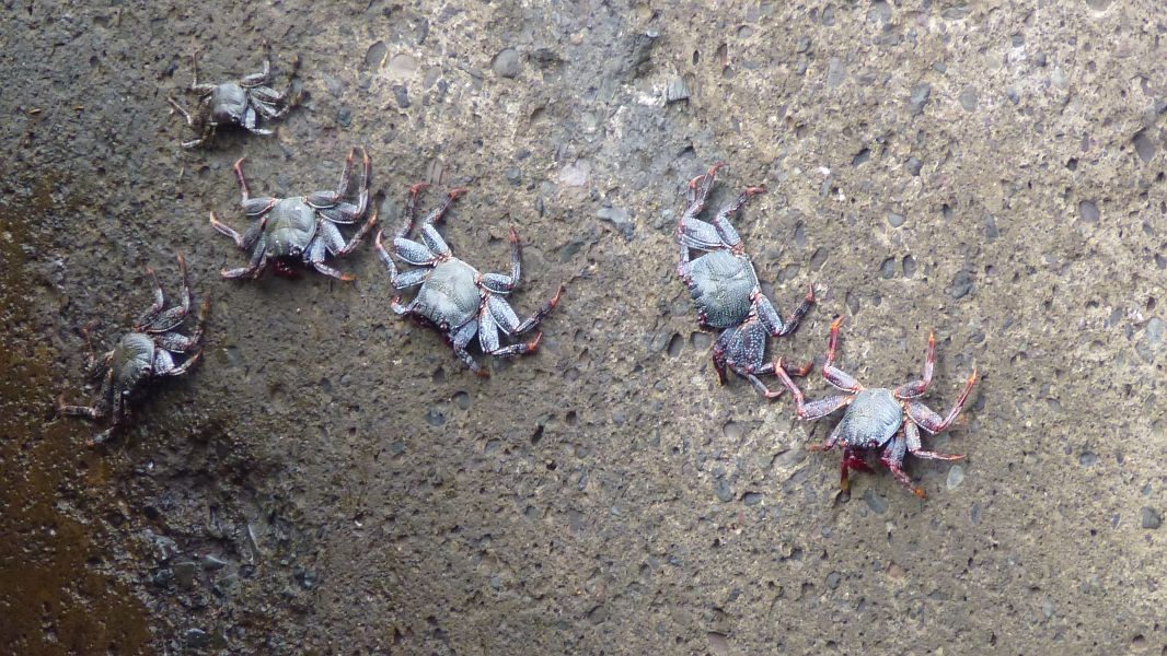 Auf den von jeder Welle überspülten Betonquadern, die man zusätzlich als Wellenbrecher hinter der Hafenmauer gestapelt hat, tummeln sich jede Menge Krabben