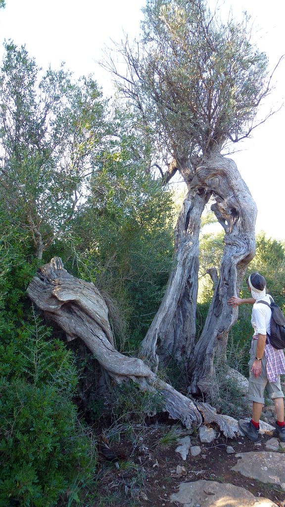 Über eine recht lange Strecke geht es durch Olivenhaine, wo es die bizarrsten Bäume gibt, zum Teil gespalten, wieder zusammengewachsen oder gestürzt und wieder aufgestanden, aber immernoch jedes Jahr neu austreibend und Früchte tragend…