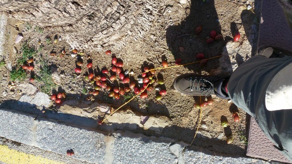 …wo an der Promenade gerade die Datteln der großen Palmen reif sind, die hier aber offenbar niemand haben will… und die so direkt von der Palme vermutlich auch gar nicht schmecken würden.