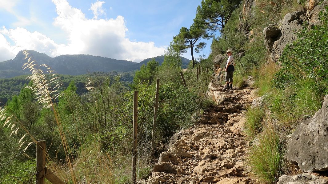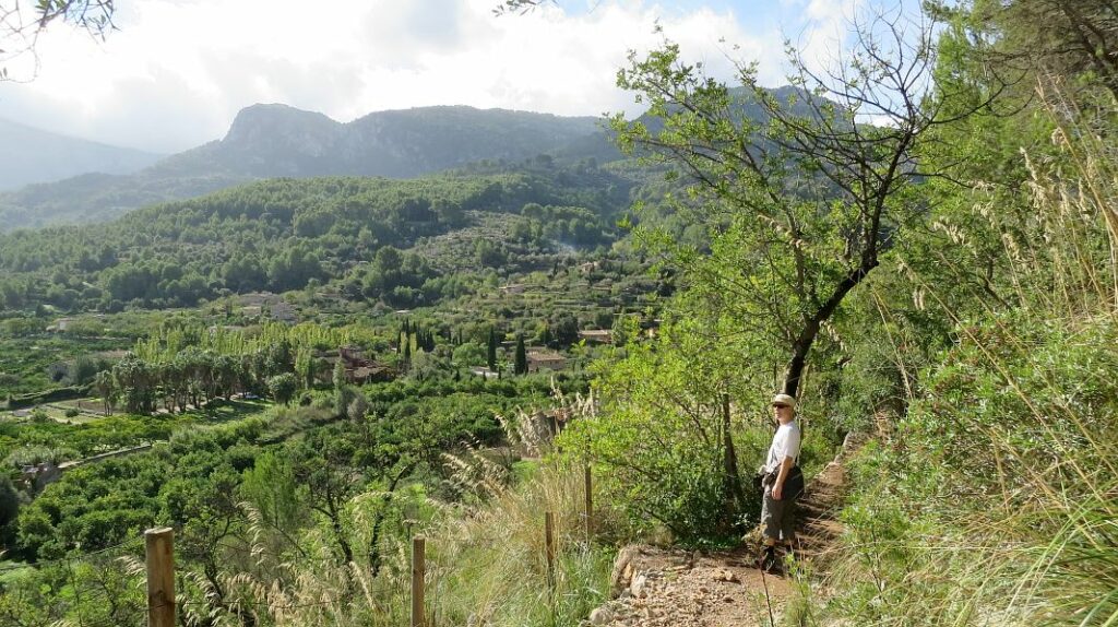 Zur Einstimmung wollen wir heute zu dem Leuchtturm gehen, den wir auch von unseren Terrassen sehen können, allerdings nicht auf direktem Weg, sondern im Rahmen einer Rundwanderung durch das Orangental zwischen Sóller und Port de Sóller. Sie beginnt unten im Hafen und da wir dort natürlich zu Fuß hingehen, haben wir schonmal 2 km drauf, bevor wir auf einen zwar etwas holprigen, aber schön angelegten Wanderweg kommen.