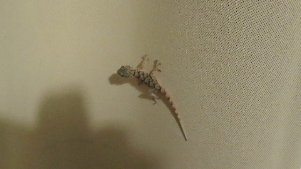…und nachts sorgt der ein oder andere Gecko am Vorhang dafür, daß wir das Schlafzimmer nicht mit irgendwelchen Insekten teilen müssen…