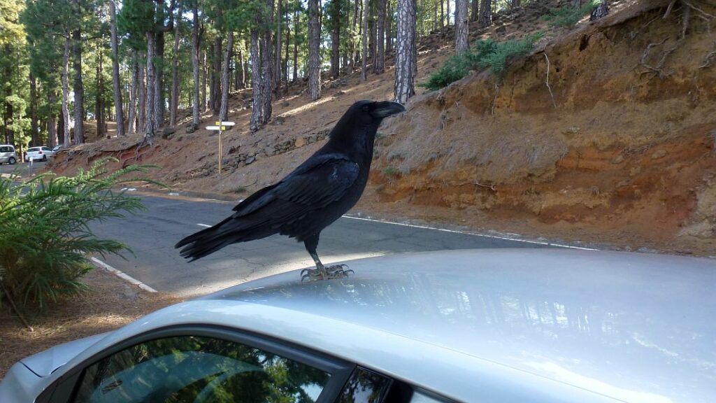 …wo uns ein paar ziemlich mutige Raben erwarten, die darauf hoffen, daß wir noch etwas von unserem Proviant übrig gelassen haben.