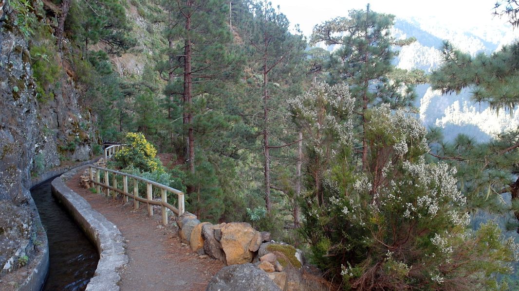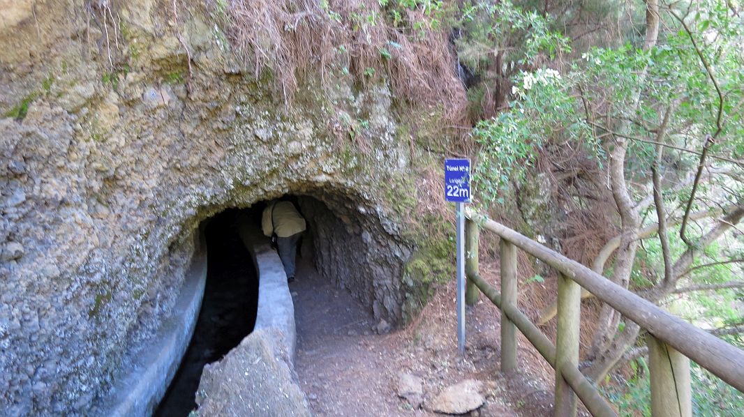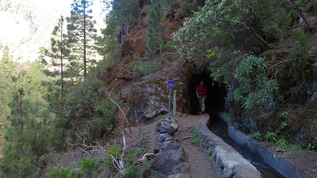 Da im Moment die Wetterbedingungen gut sind, wollen wir heute eine der wenigen Wanderungen machen, die uns in mehr als 20 Jahren La Palma noch nicht gelungen sind, wir wollen zu den Wasserquellen der Insel bei Los Sauces, zu denen ein spektakulärer Weg durch 13 Tunnel führt, die vor langer Zeit von den Inselbewohnern gebaut wurden, um das Wasser durch einen gemauerten Kanal talwärts führen zu können.