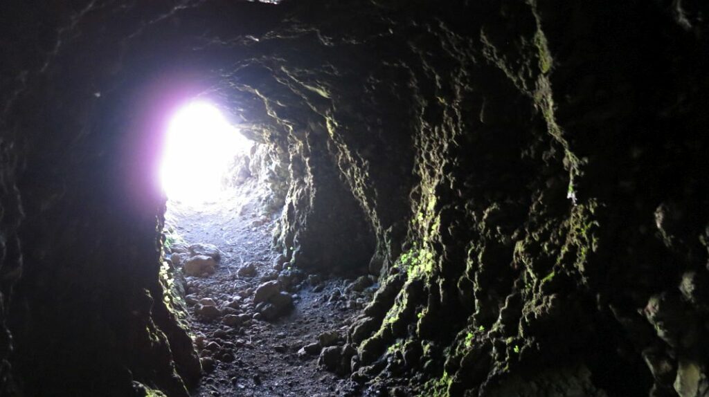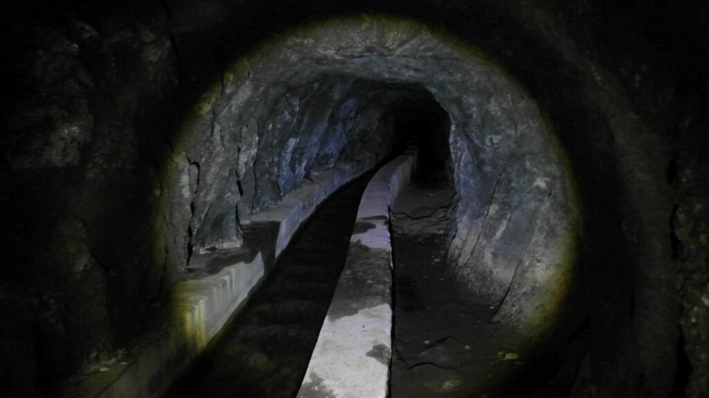 Der längste Tunnel ist rund 350m lang und spätestens hier ist eine Taschenlampe unverzichtbar, ohne die es hier stockfinster wäre…