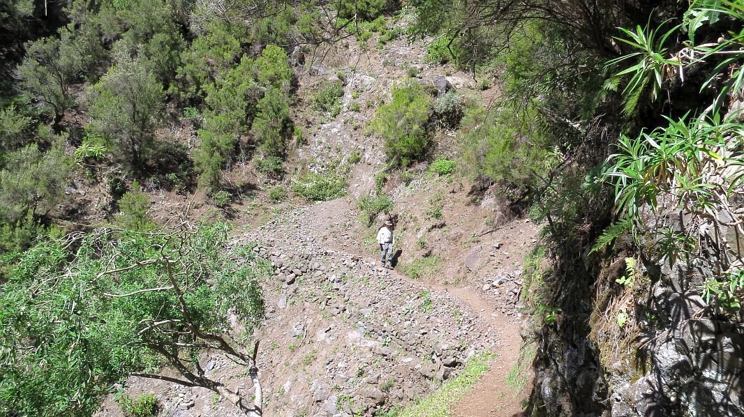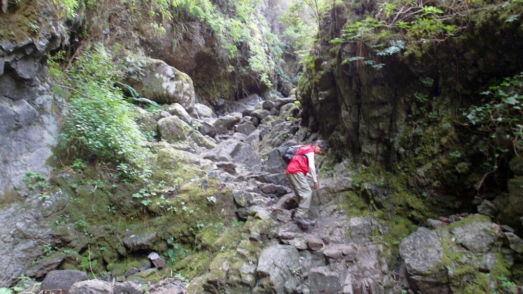 Nach den Tunneln kommt ein anstrengender Abstieg über 1000 Höhenmeter, der mehrere Stunden dauert und teilweise über unwegsames Gelände führt, das auch nicht überall ungefährlich ist…