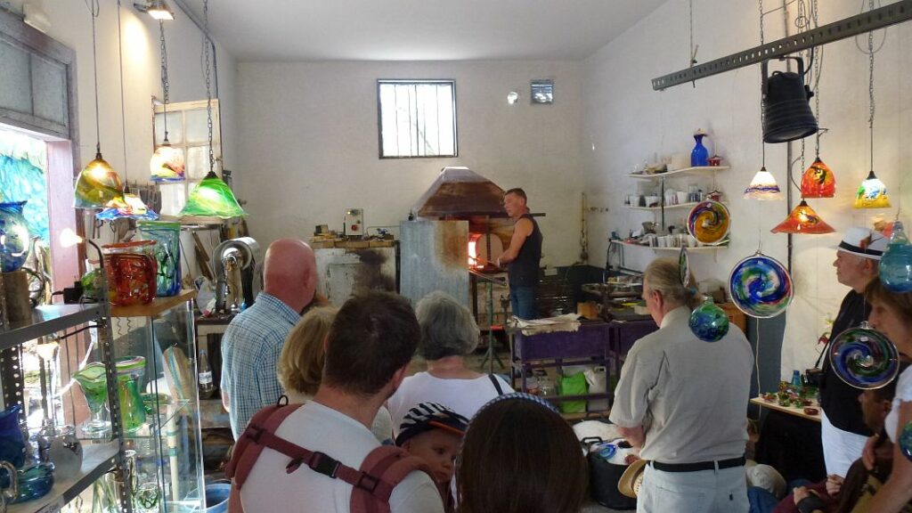 Auch jede Menge Unterhaltung wird geboten, von Glasbläsern, die bunte Dekokugeln herstellen bis zu Beatles-Marionetten…