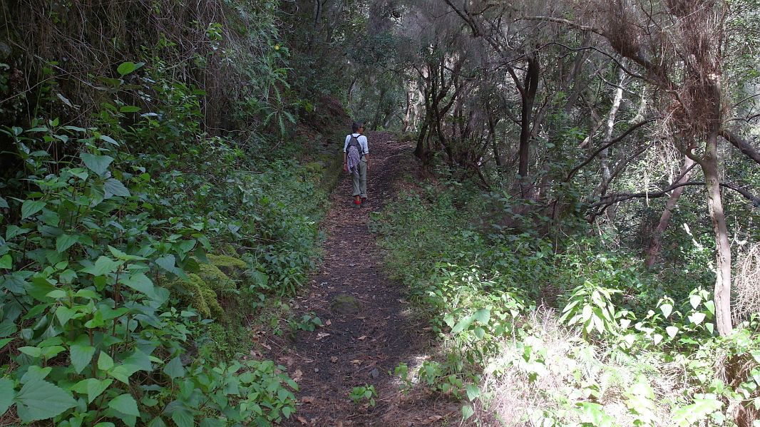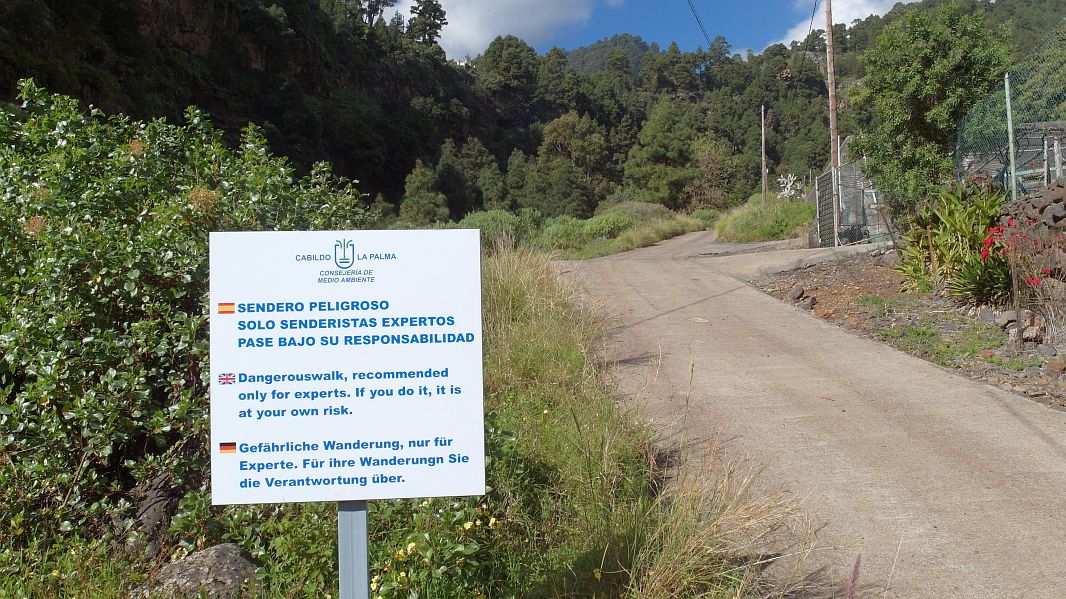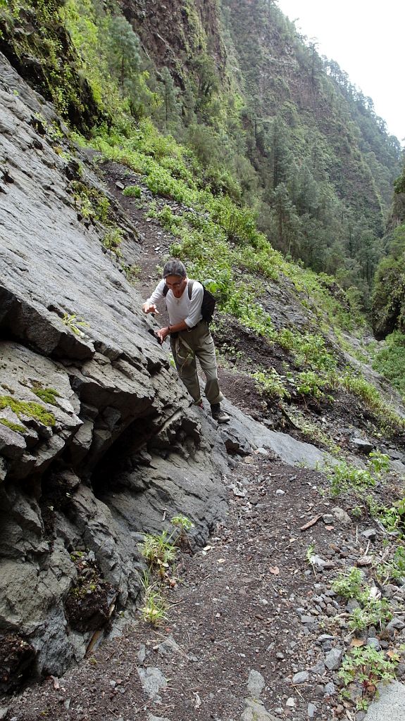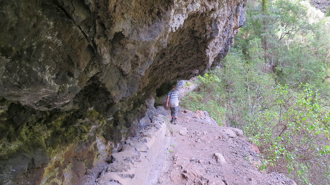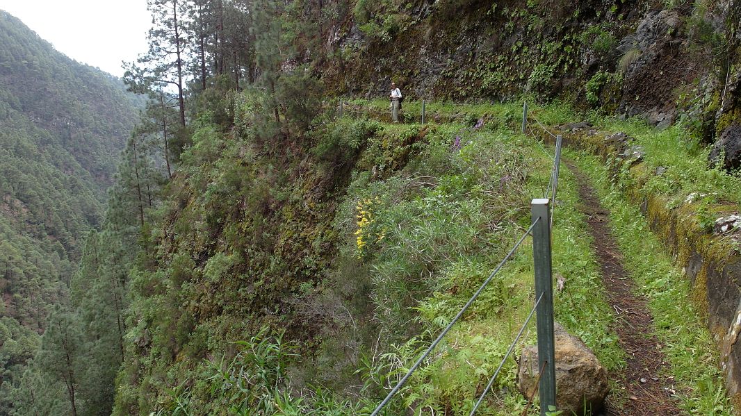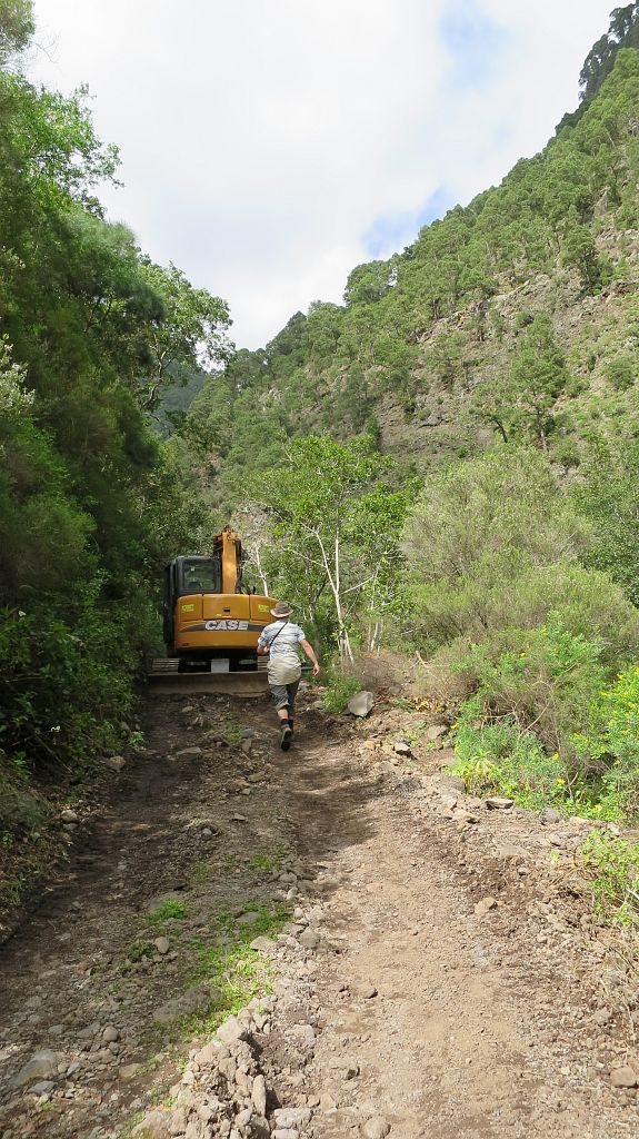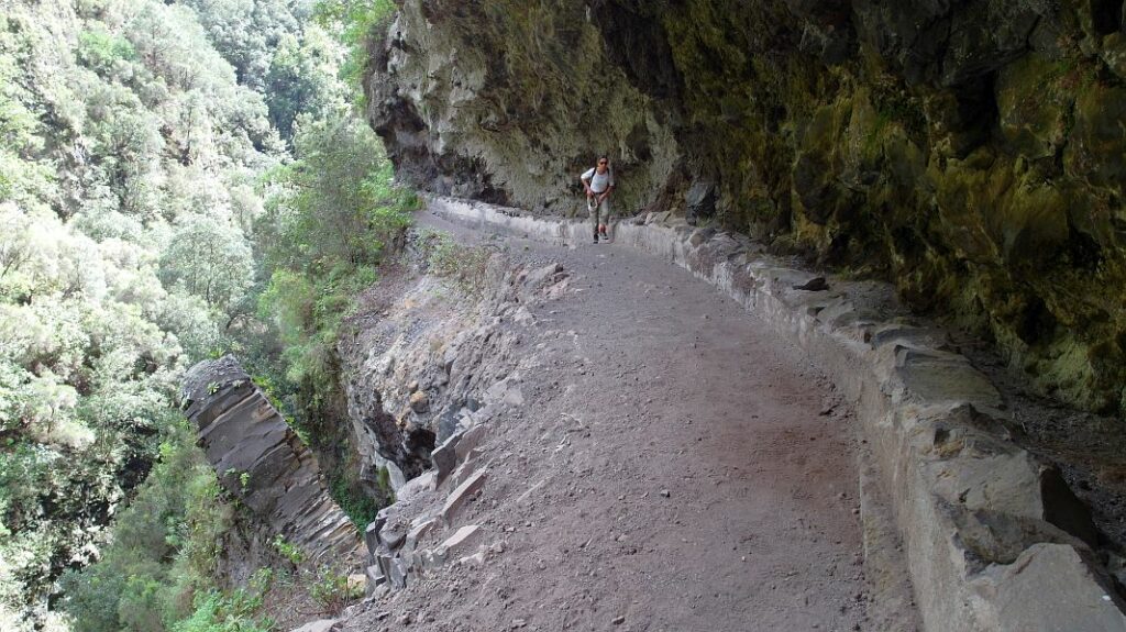 Immer wieder gibt es Steinschlag oder Erdrutsche auf dem Weg (was auch vorher angekündigt war) und der Weg geht recht nahe an dem Barranco vorbei, in den man mehrere hundert Meter hinabschauen kann…