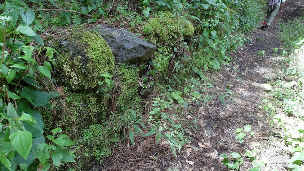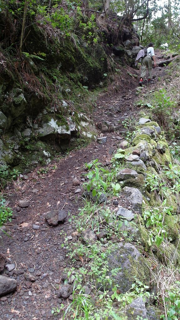 Bald wird der Weg schmäler und man hört am ständigen Rauschen und Glucksen, daß man bereits entlang der uralten Wasserleitung läuft, die hier noch – mit vermoosten Decksteinen geschützt – überirdisch verläuft.