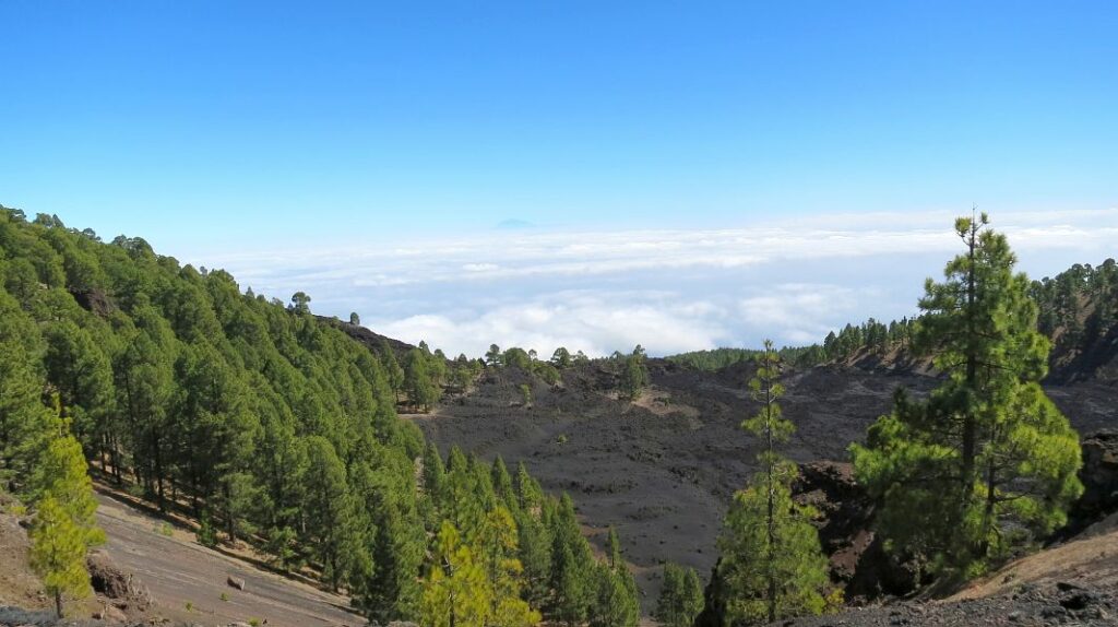 Heute ist strahlendes Wetter und die Cumbre auf ihrer ganzen Länge wolkenfrei, weshalb wir beschließen, die abgebrochene Wanderung von vorgestern auf der Vulkanroute zu wiederholen.