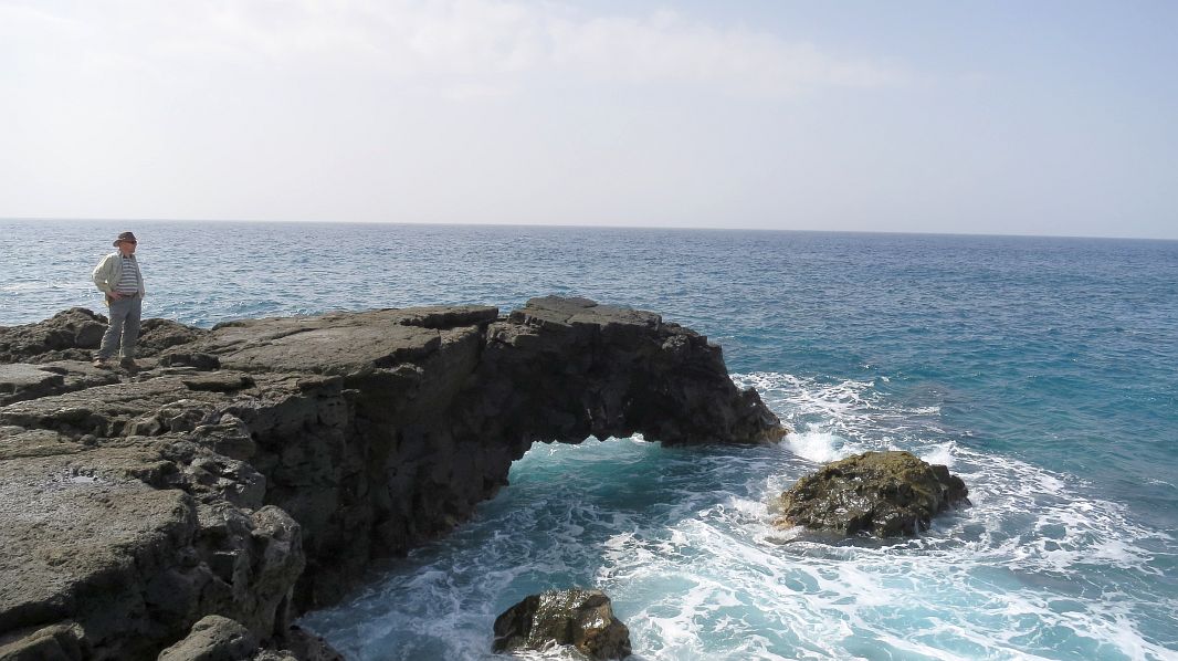 …und steht auf einer Lavaplatte, die erst 1949 bei einem Vulkanausbruch entstanden ist. Daß unter dieser Platte große Hohlräume entstanden sind, war bereits bekannt, immerhin rollen hier täglich die Wellen mit oft ziemlicher Heftigkeit an die Küste.