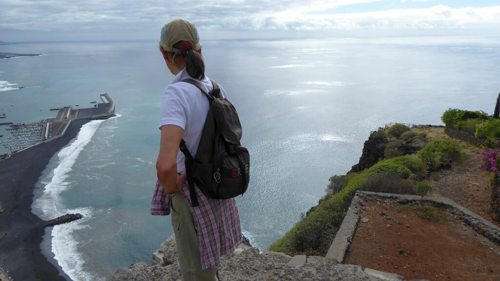 Erwartungsgemäß ist es diesmal besonders schwer und wir stellen den Weltrekord im Pause machen auf. Trotzdem sind wir irgendwann am ersten Aussichtspunkt, von dem man auf den neuen Hafen schauen kann.