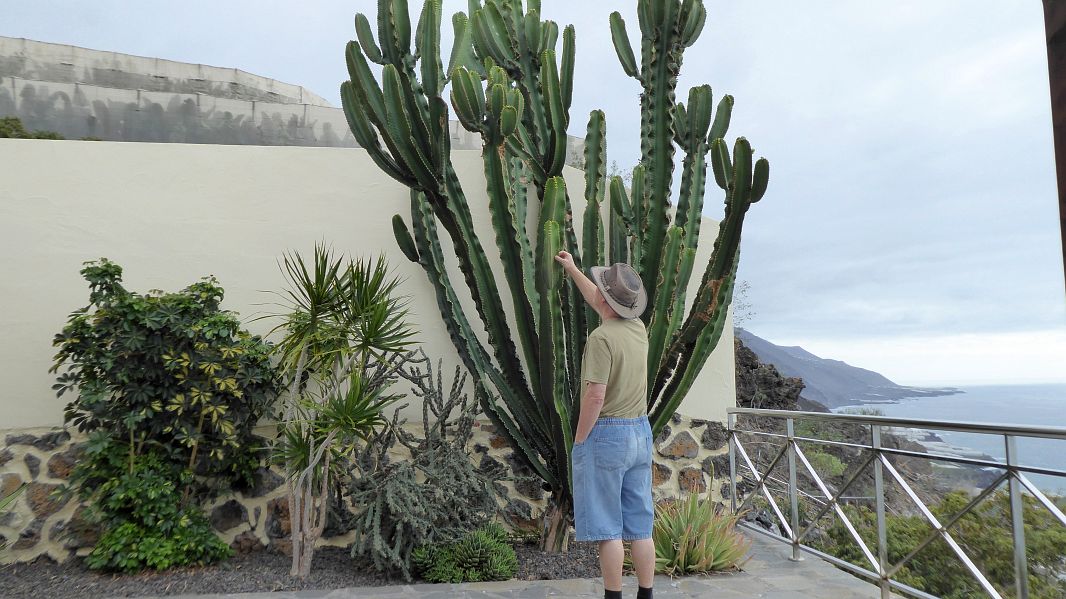 Zurück am Haus fällt mir einmal mehr auf, wie schnell einige Pflanzen hier wachsen. Ganz am Ende unserer Terrasse ist ein schmaler Pflanzstreifen mit einer riesigen Euphorbia Trigona, eigentlich kein Kaktus, sondern ein Wolfsmichgewächs.