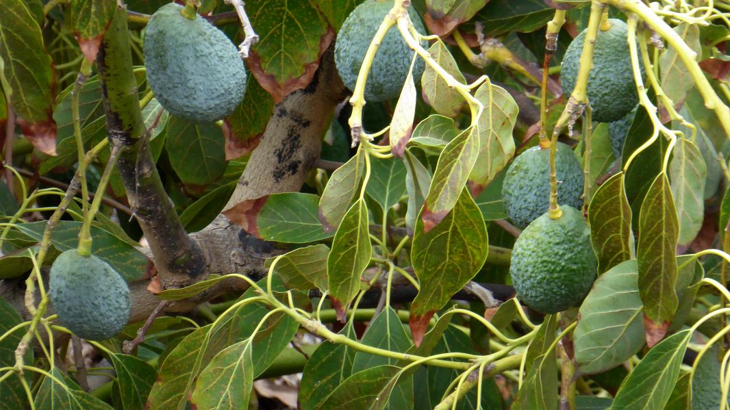 Als man das Gelände terrassiert hat, entstand unter dem Haus eine Freifläche, die in den ersten Jahren ungenutzt blieb, bis man dort vor wenigen Jahren winzige Avocado Setzlinge eingepflanzt hatte. Mittlerweile sind stattliche Bäume daraus geworden, die auch viele Früchte tragen, was man allerdings erst sieht, wenn man etwas näher ran geht, weil sich grün nicht sehr von grün abhebt…