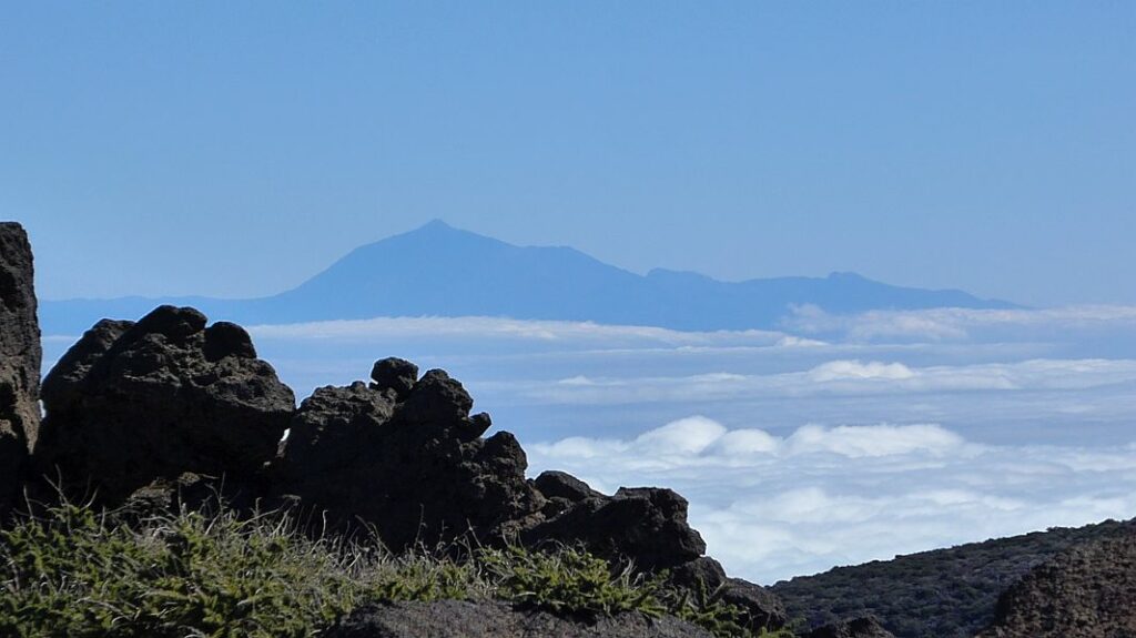 Vom Gipfel hat man einen schönen Blick über die Wolken auf Teneriffa