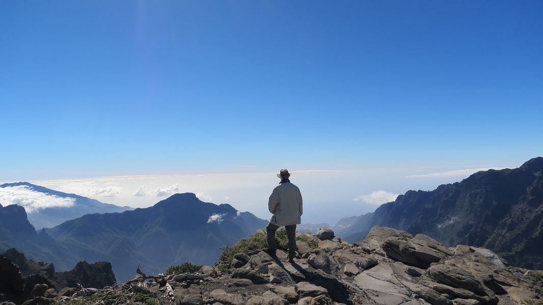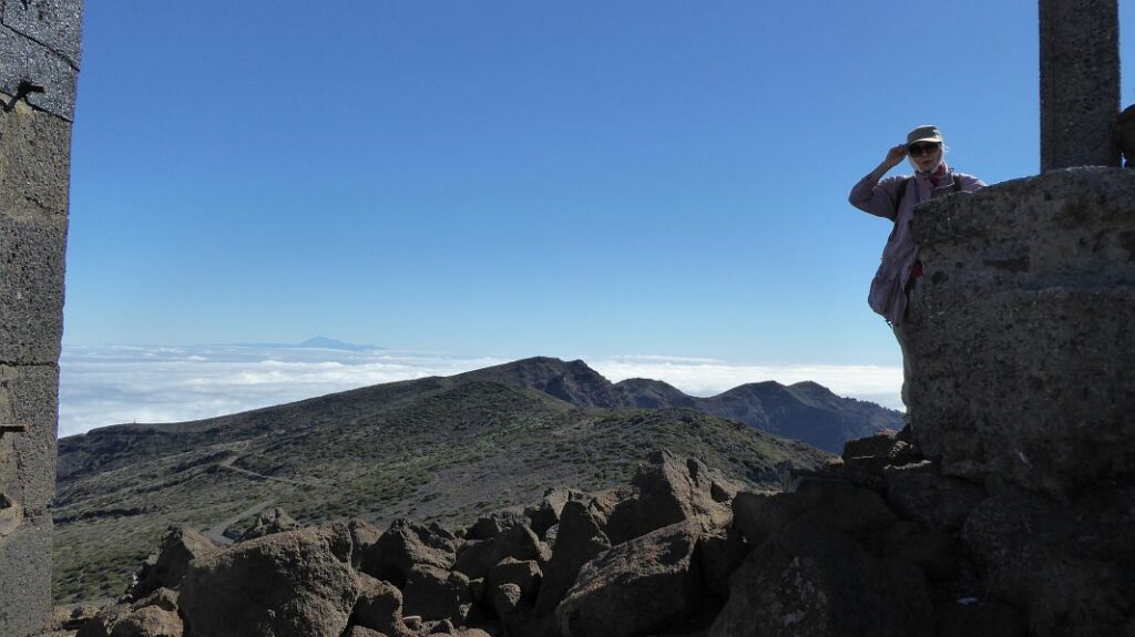 Mehr als einmal muß die Fangleine den Hut retten und bald haben wir den Pico de la cruz erreicht.