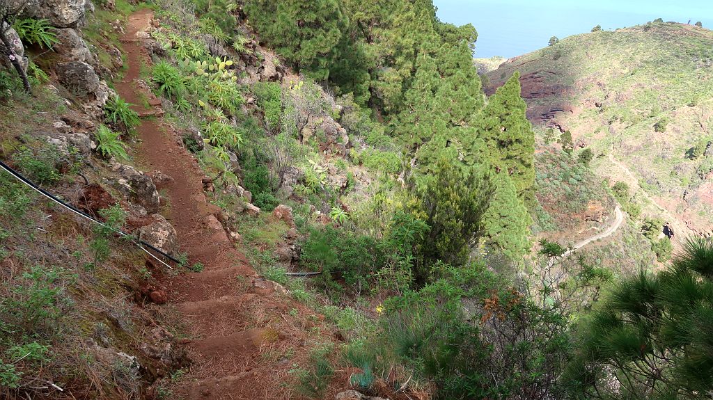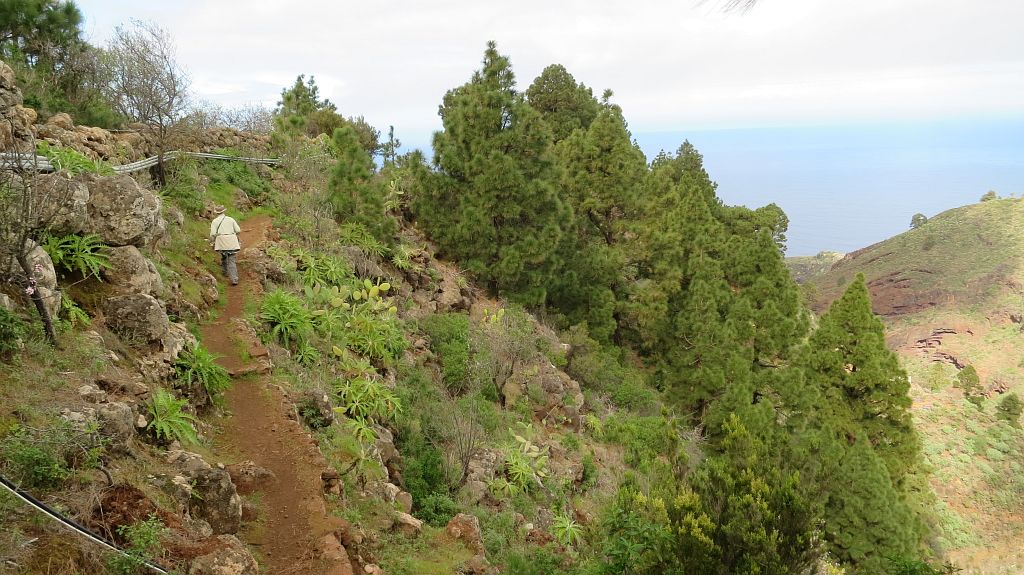 Auf der anderen Seite geht es wieder hoch, offenbar ist es hier im Jahresdurchschnitt feucht genug, daß es sogar Gras gibt… eine Seltenheit auf La Palma.
