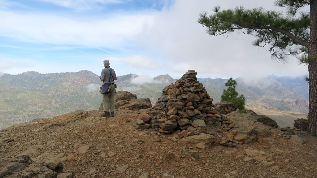 Kurz vor dem Gipfel können wir trotz der aufziehenden Bewökung noch einen Blick auf unser geparktes Auto werfen, zu dem sich inzwischen weitere hinzugesellt haben…