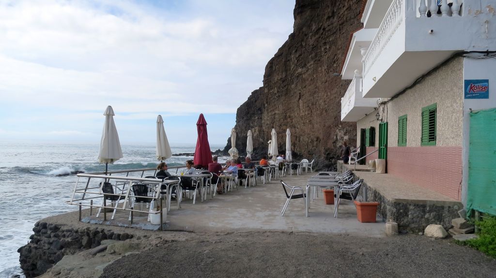 …bis hinunter an den Strand von Tasarte, wo es ein tolles Fischrestaurant gibt und wo wir uns beim Meeresrauschen von der Wanderung erholen.